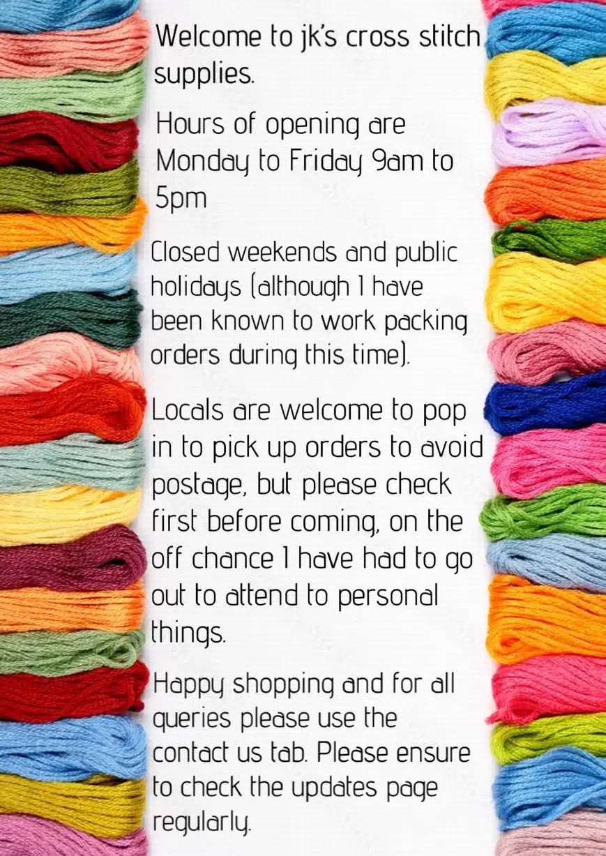 Welcome to JK’s Cross Stitch Supplies – for all your cross stitch supplies within Australia and New Zealand.