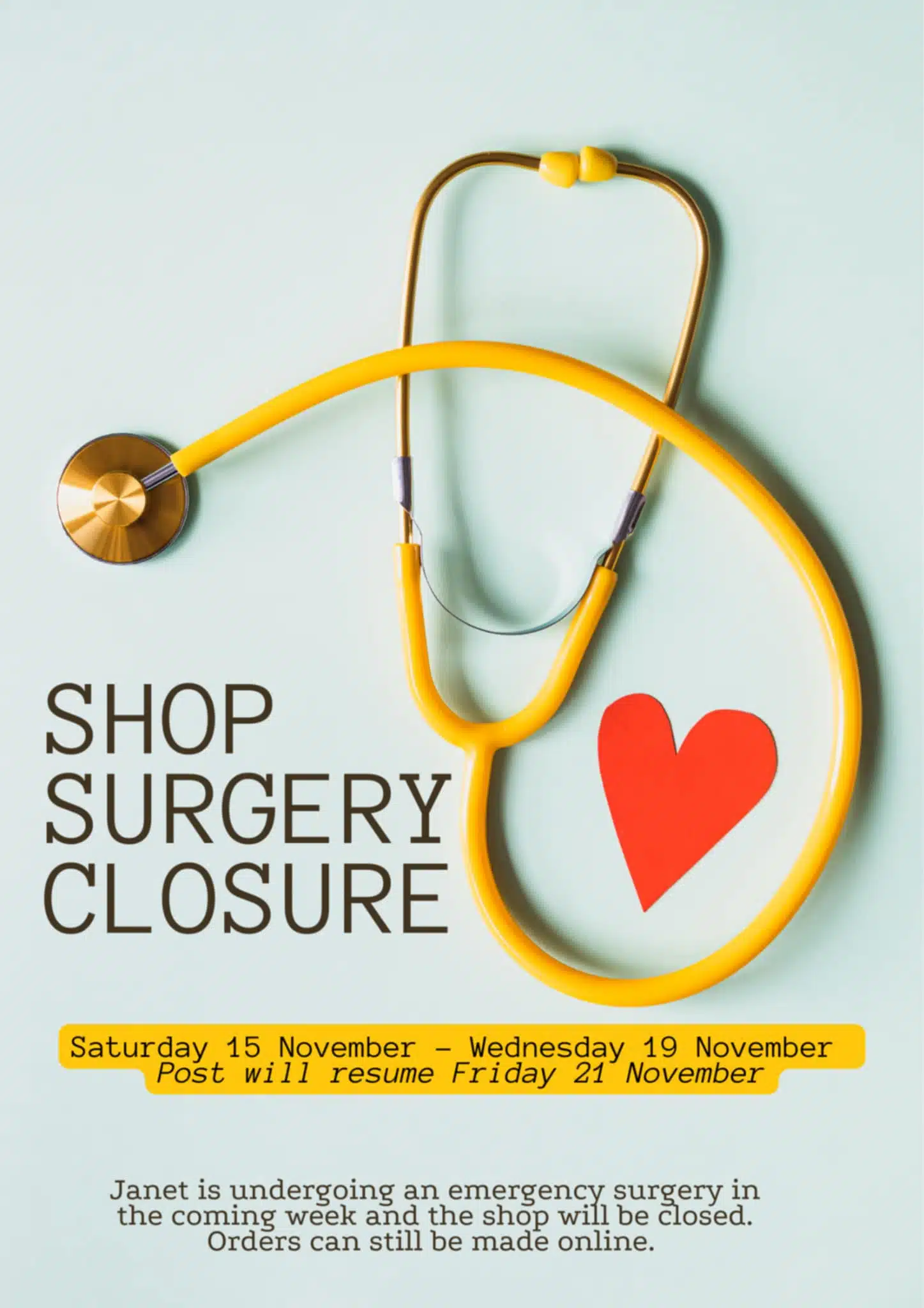 Hi everyone……..been a flat out week already but saw surgeon this morning and unfortunately am going in for rush surgery on Monday November 17th (next week) Tthis means Shop although open wont have anyone in attendance until Thursday November 20th, i have to take the time off and stay off my foot and give it…